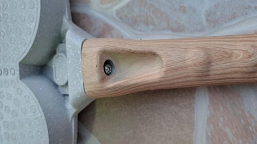The handle is comfortable to grip, the pan is heavy, and the surface is not quite smooth yet. It looks good to use.